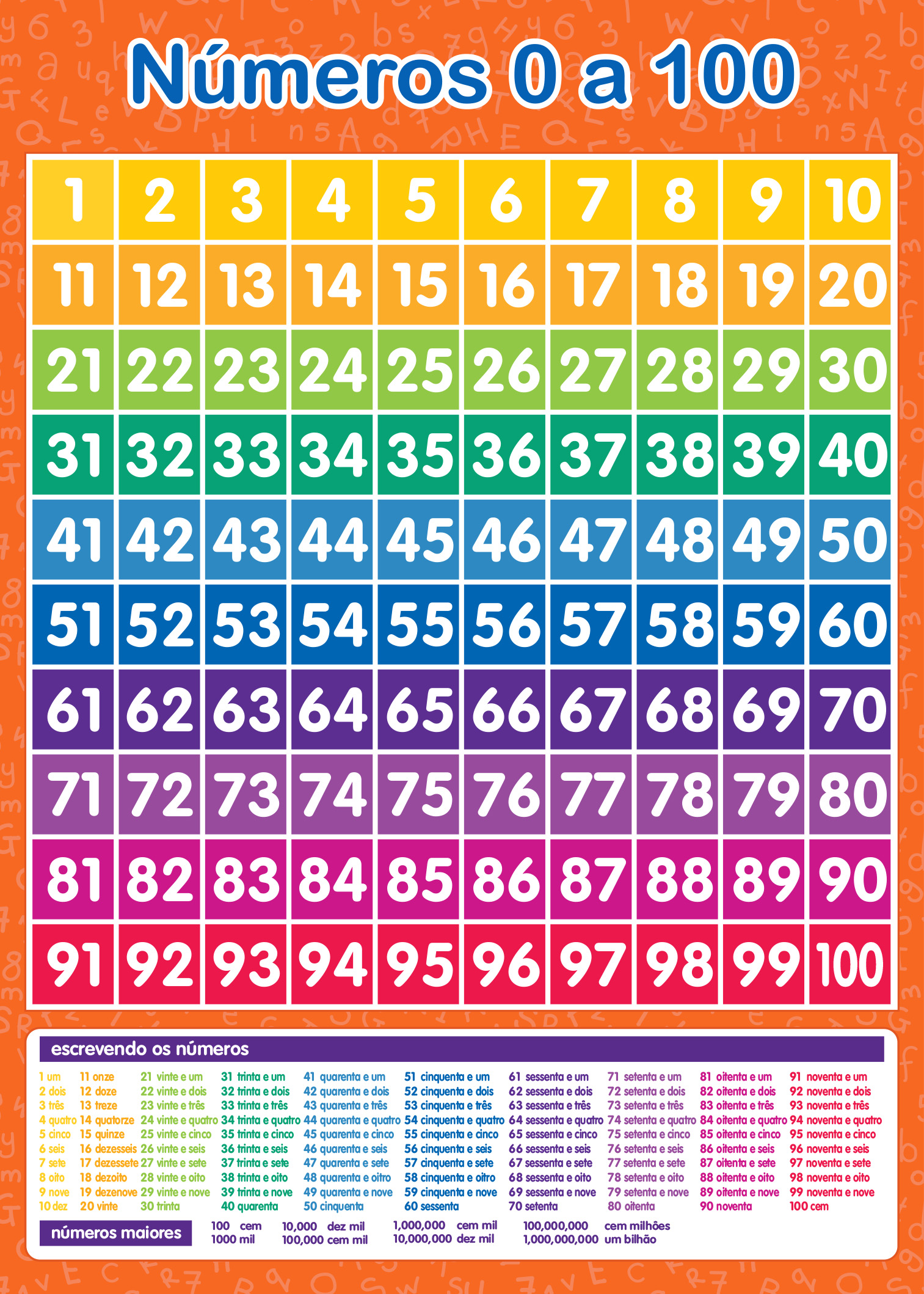 Banner Números 0 a 100 Colorido | Sequência Numérica Escolar